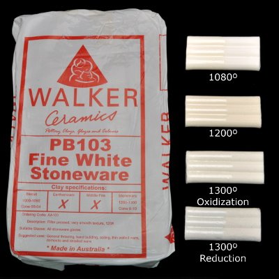 ![]() | Stoneware #10 | 10Kg | Classic fine white stoneware exhibiting beautiful creaminess and is our ever-reliable robust white stoneware. It is sieved through 120# so is beautifully fine. It has a firing range of 1240-1300 and vitrifies at 1240 . It is a bit creamier and more open than PB103 so can soften a bit while throwing. A lovely soft cream white and eminently suitable for all domestic and production ware as well as hand building. Suits most standard stoneware glazes. |